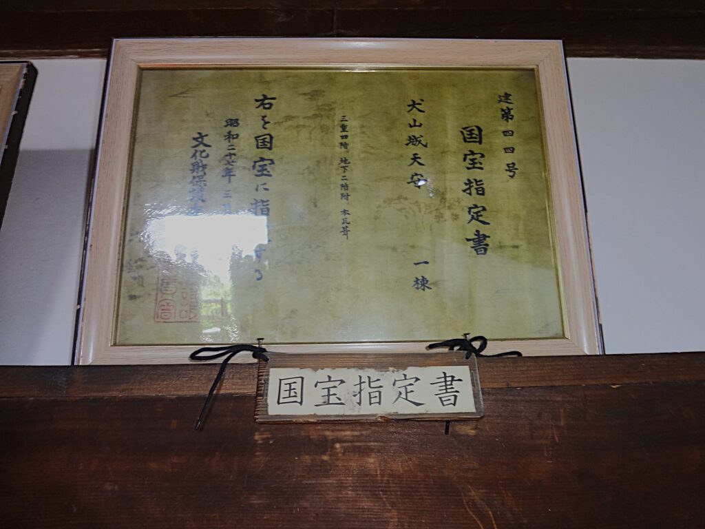 展望階には犬山城以外の国宝のお城の写真と、国宝の指定書が飾ってありました。これ自体も超古い!昭和27年に国宝指定されています。