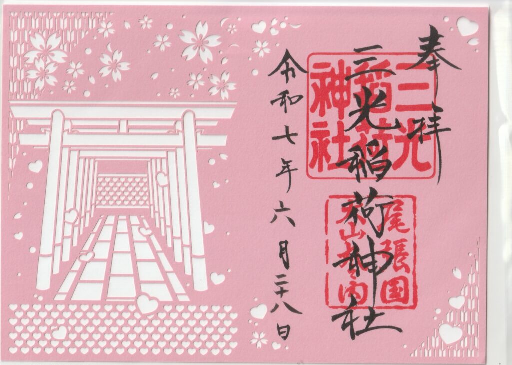御朱印はそれぞれ1枚300円です。三光稲荷神社はピンクの切り絵バージョンもありました。可愛いですよね!