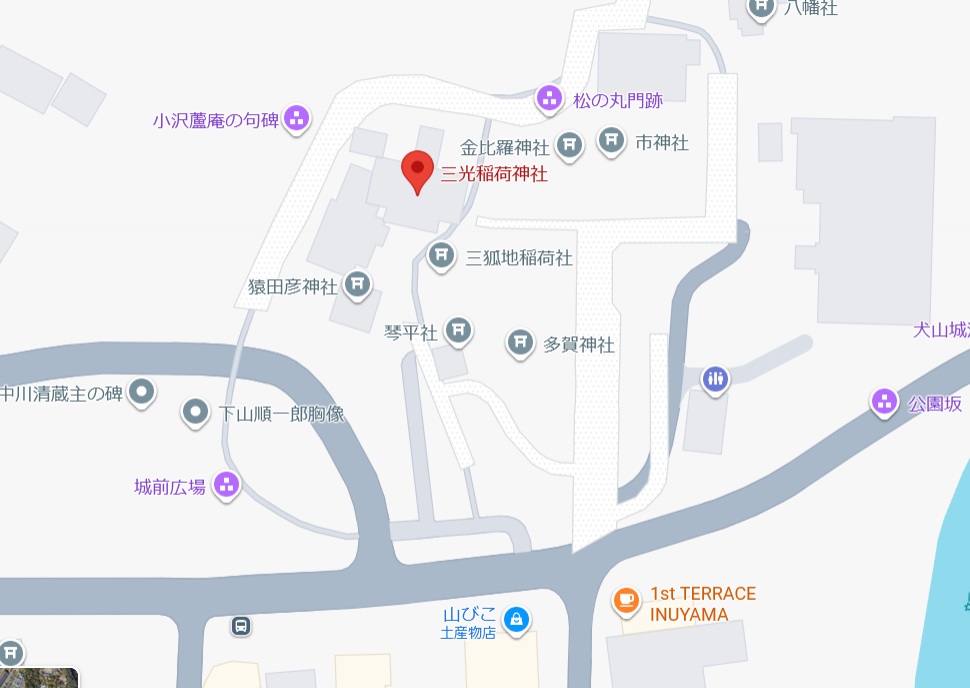 無事に御城印を購入し、犬山城の入り口を目指します。入り方は3つあって、「犬山城入口」から入る方法、「三光稲荷神社」を通り抜けて行く方法、「針綱神社」を通り抜けて行く方法です。